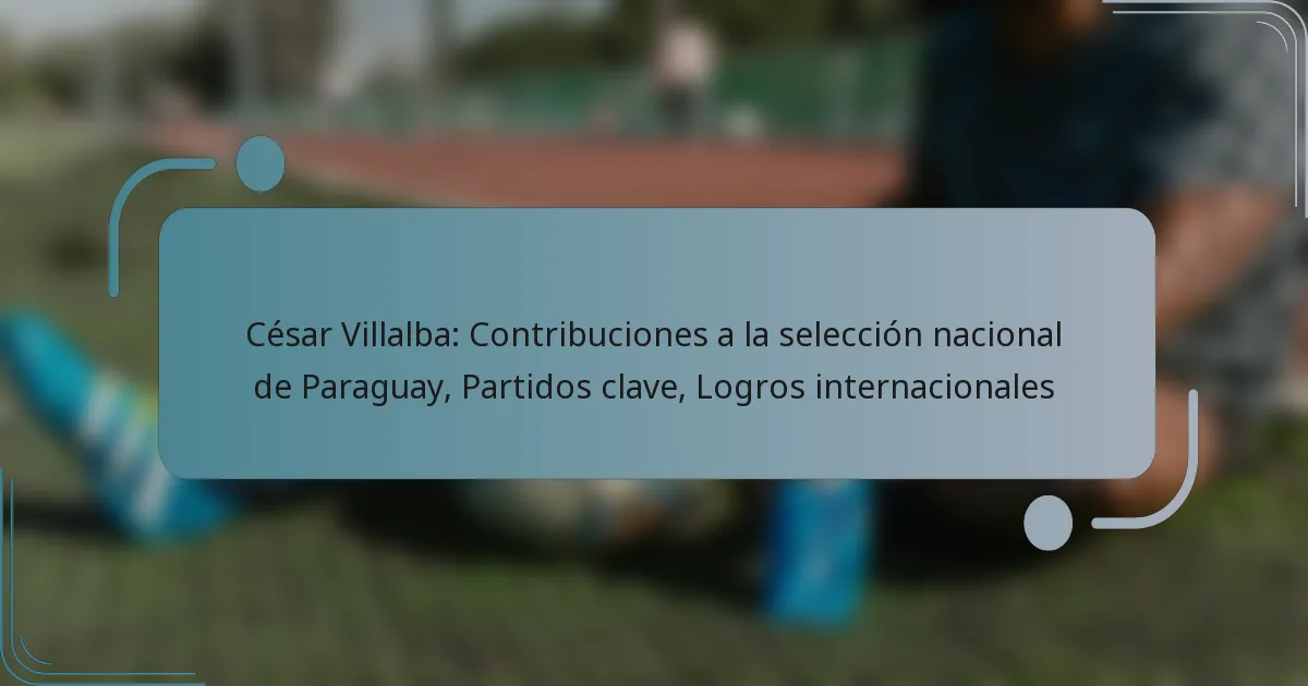 César Villalba ha realizado contribuciones significativas a la selección nacional de fútbol de Paraguay, participando en varios torneos internacionales y ganando reconocimiento por su rendimiento. Sus logros reflejan tanto habilidad individual como éxito del equipo, consolidando su legado en el fútbol paraguayo.